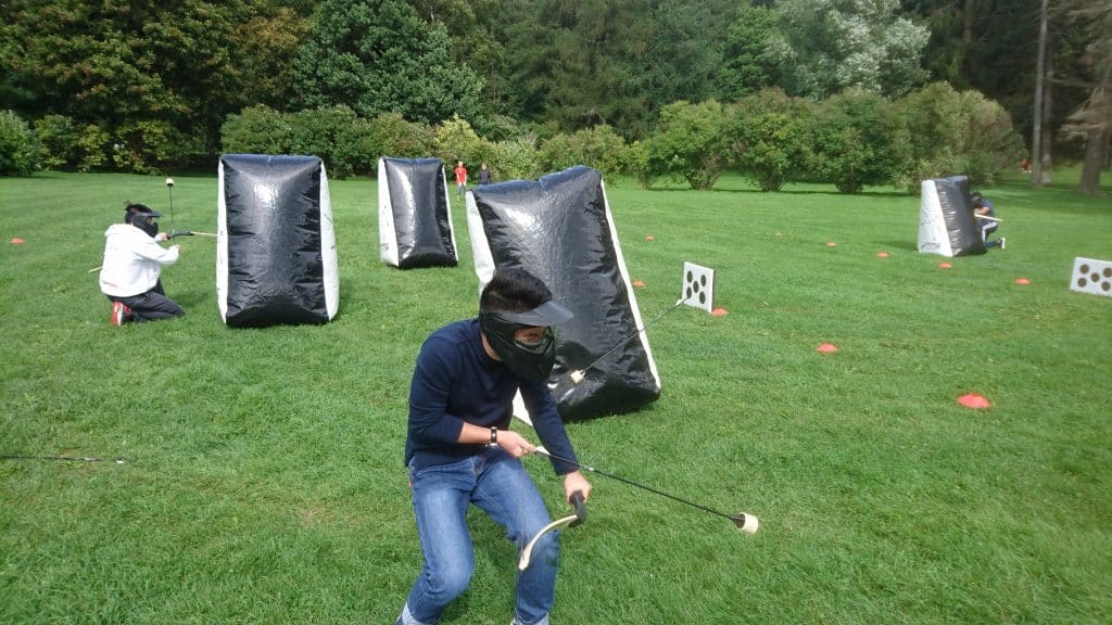 Archery Tagissa on tarkoituksena osua maskit päässä pehmopäisillä nuolilla vastustajan pelaajiin ja kerätä pisteitä omalle joukkueelle.